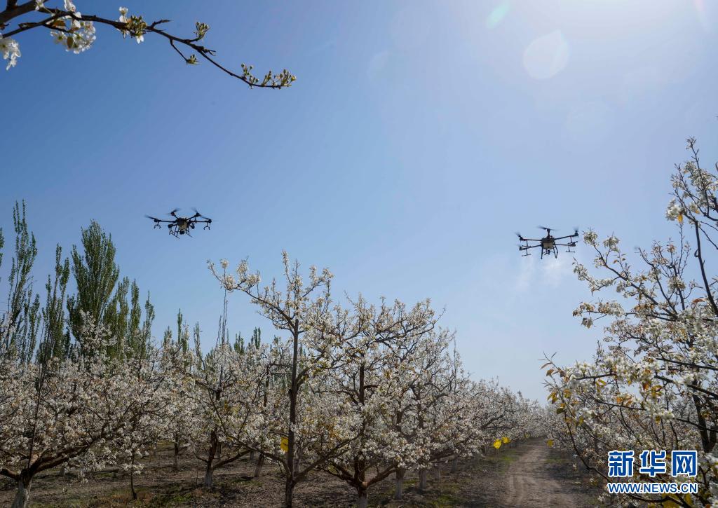 新華全媒+丨新疆:梨農(nóng)授粉用上無人機