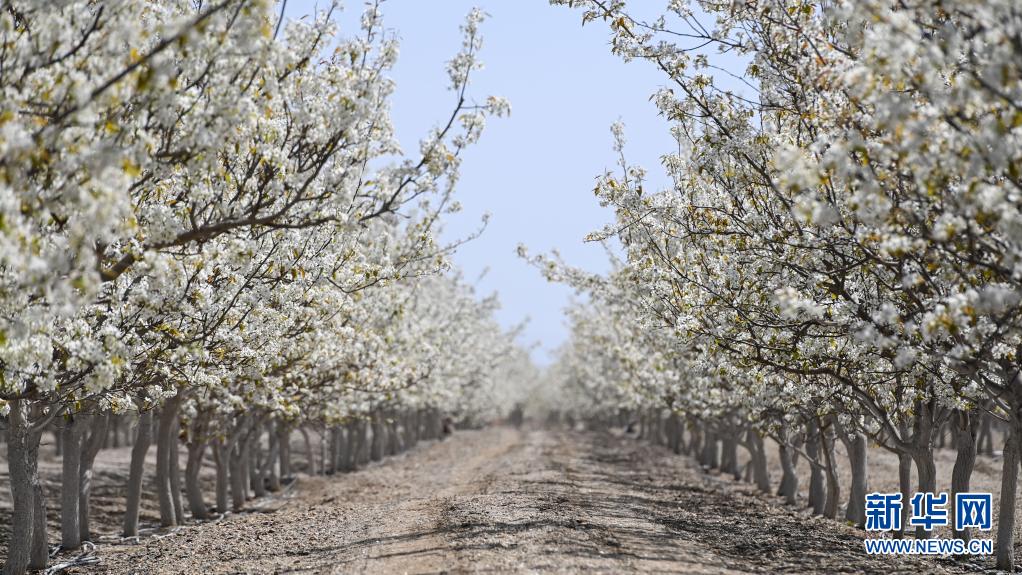 這是4月11日在鐵門關(guān)市拍攝的一處梨園。新華社記者 丁磊 攝