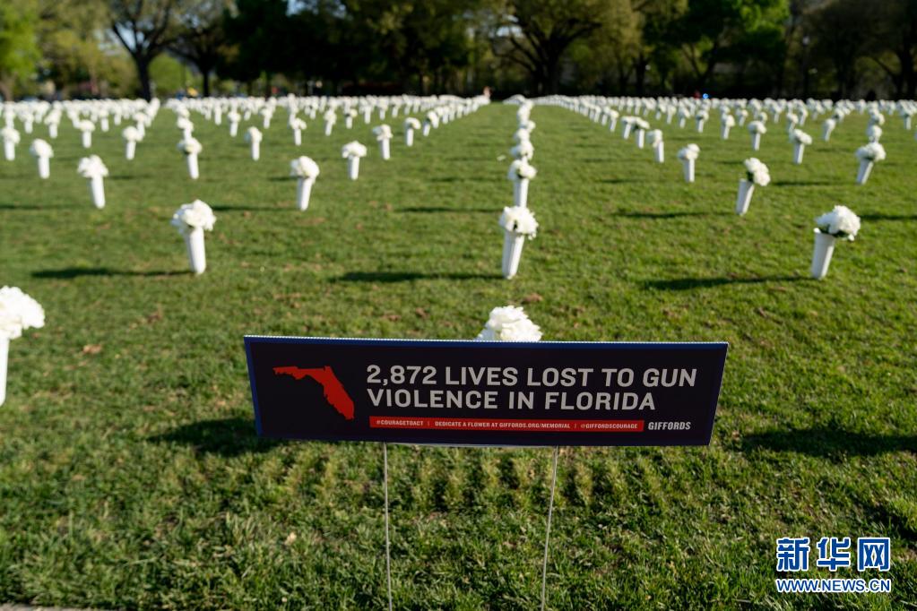 當日,四萬朵白色絹花被擺放在國會大廈與華盛頓紀念碑之間的國家廣場草坪上,以紀念在全美槍擊事件中喪生的人們。據(jù)美國媒體報道,2020年美國造成四人及以上傷亡的嚴重槍擊案數(shù)量創(chuàng)下歷史新高,較2019年激增47%。同時,美國槍支銷售數(shù)量也突破歷史紀錄,民眾對公共安全擔憂加劇。