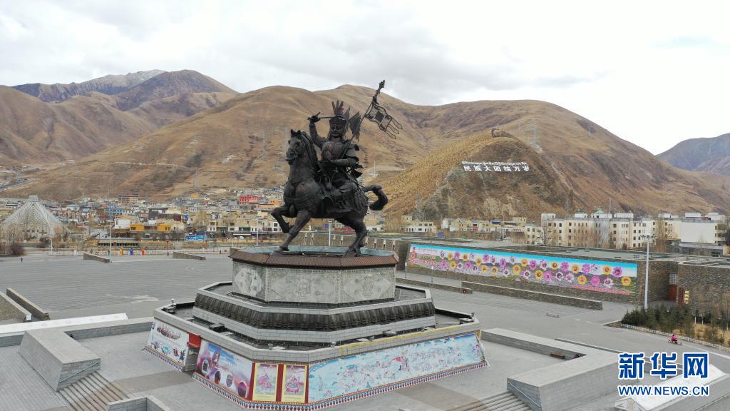 這是青海省玉樹藏族自治州玉樹市格薩爾王廣場(3月10日攝,無人機照片)。