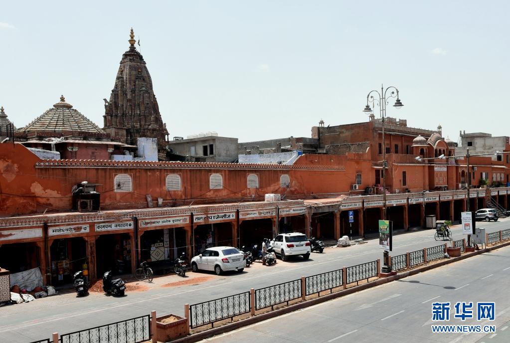 4月18日,印度著名的旅游城市齋浦爾街頭空空蕩蕩。由于新冠疫情不斷惡化,印度實行了更嚴格的封控措施,許多重要的博物館和旅游景點被關閉。新華社發(fā)