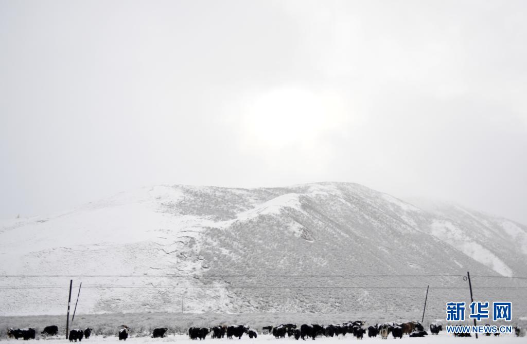 這是4月19日在青海省果洛藏族自治州甘德縣拍攝的牦牛群。新華社記者 張曼怡 攝