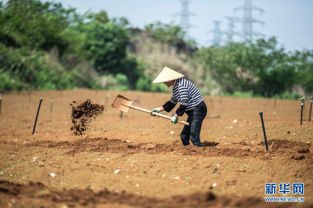 4月20日,貴州省六盤水市六枝特區(qū)木崗鎮(zhèn)農(nóng)民在田地里勞作。