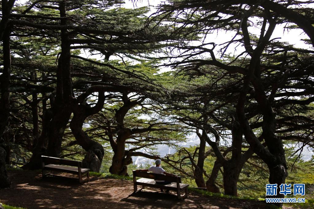 4月18日,一名男子坐在黎巴嫩舒夫保護區(qū)雪松樹下休息。
