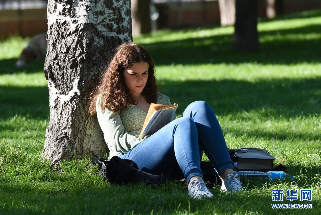 4月16日,一名女子在西班牙馬德里一個(gè)公園內(nèi)讀書。
