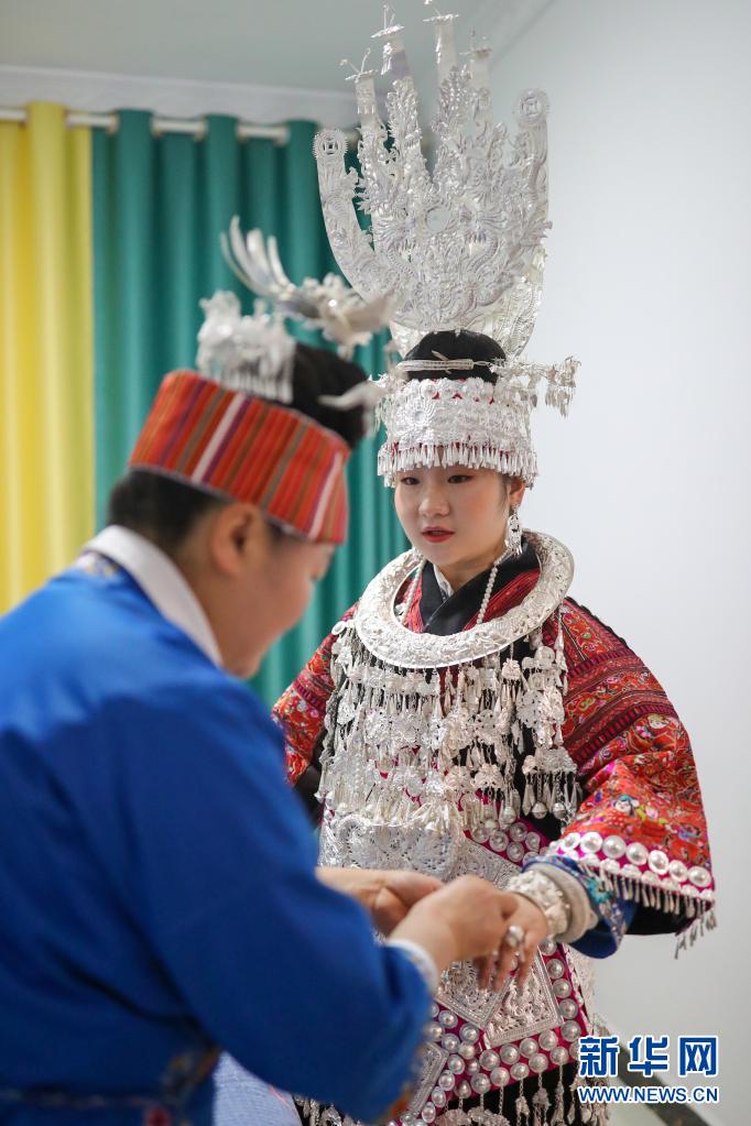 今年姊妹節(jié)前夕,母親張元英把女兒盛裝的銀飾拿到銀飾店里進(jìn)行清洗,希望女兒能在盛裝巡演上展示最美的一面。4月25日姊妹節(jié)當(dāng)天,張佳麗早早起床,在母親和同學(xué)的幫助下,開始化妝、穿衣、佩戴銀飾,一直忙到9點才準(zhǔn)備完畢。身著盛裝站在巡演隊伍中,張佳麗說:“這是我們苗族同胞最大的節(jié)日,無論身處何地,我都會如約回家參加活動!”
