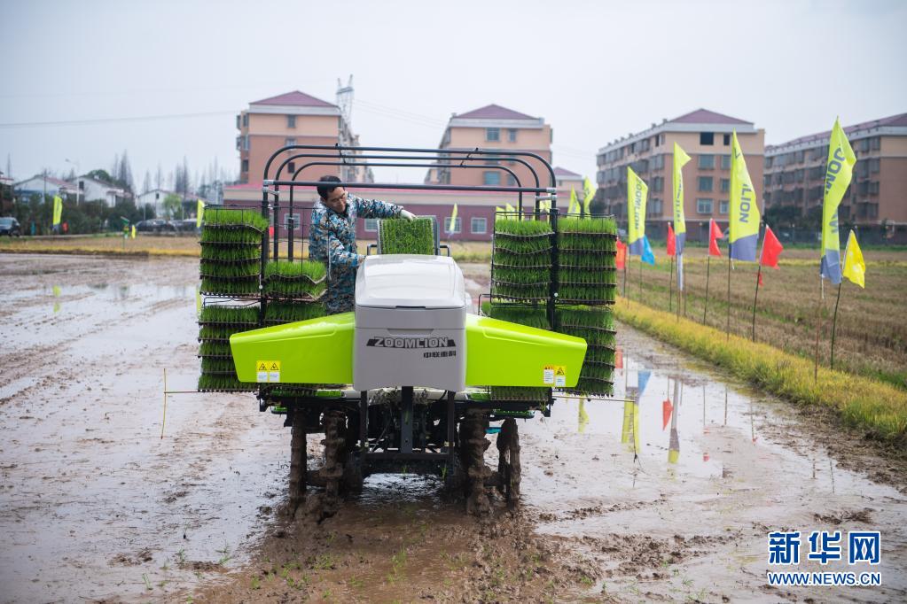 在湖南省益陽市沅江市草尾鎮(zhèn)沅江現(xiàn)代農(nóng)業(yè)技術(shù)研發(fā)基地,工作人員演示插秧機操作(3月2日攝)。新華社記者 陳思汗 攝