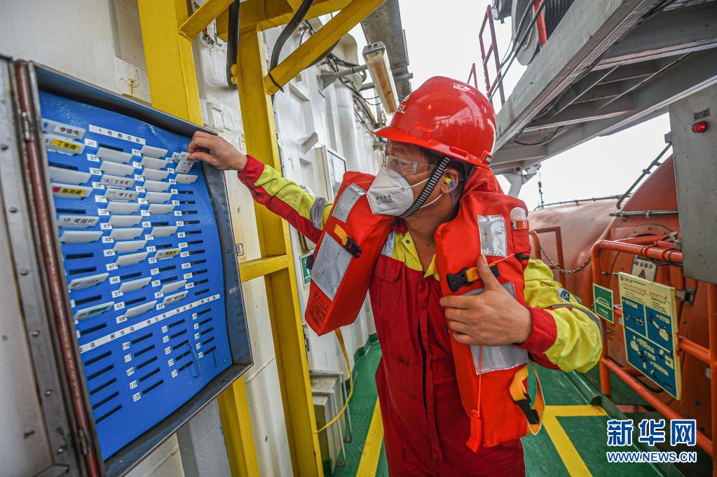 4月25日,工人在中國海油樂東15-1氣田上進行應(yīng)急演練。