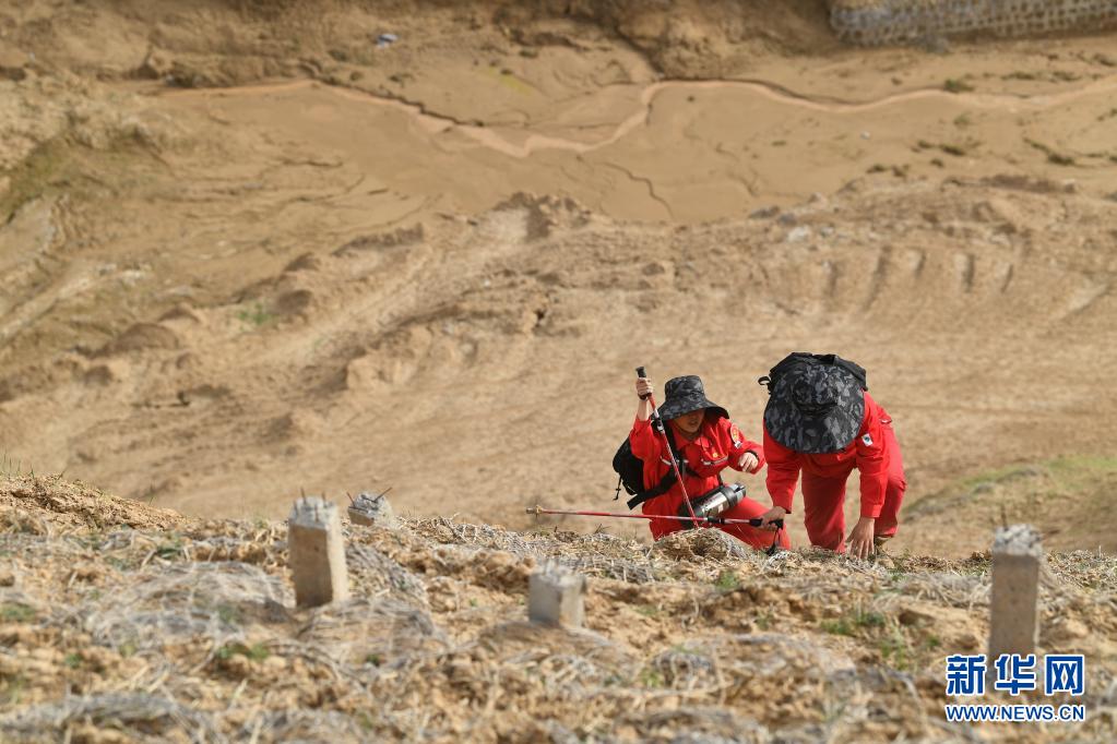 4月28日,巡線隊(duì)員侯勵(lì)峰、曹碩(左)在巡線途中。新華社記者 張博文 攝