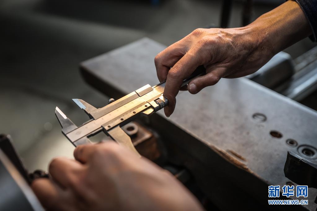 4月30日,王尚典使用卡尺測量零件數(shù)據(jù)。