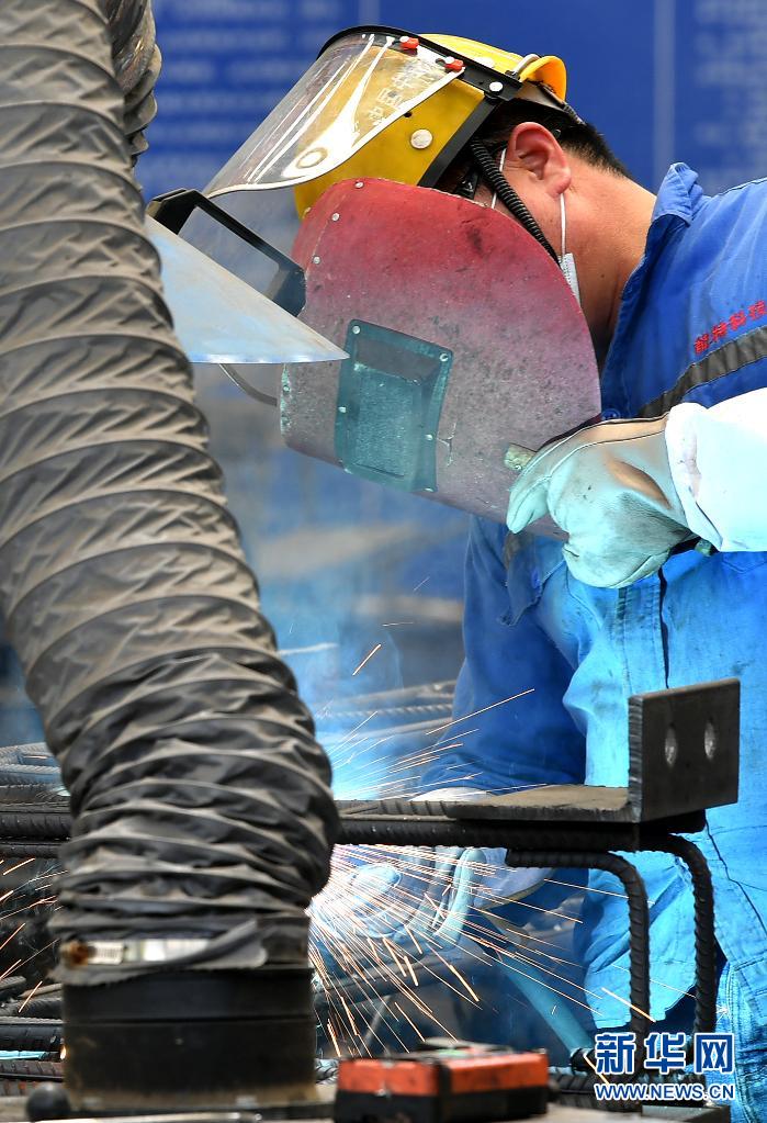 5月1日,在陜西西安地鐵八號(hào)線豐禾路站1號(hào)豎井施工現(xiàn)場,中鐵七局的工作人員在作業(yè)。