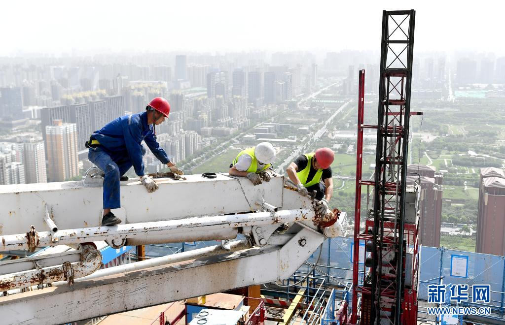5月1日,在陜西西安未央?yún)^(qū)一項目施工現(xiàn)場,中建七局四公司的工作人員在作業(yè)。