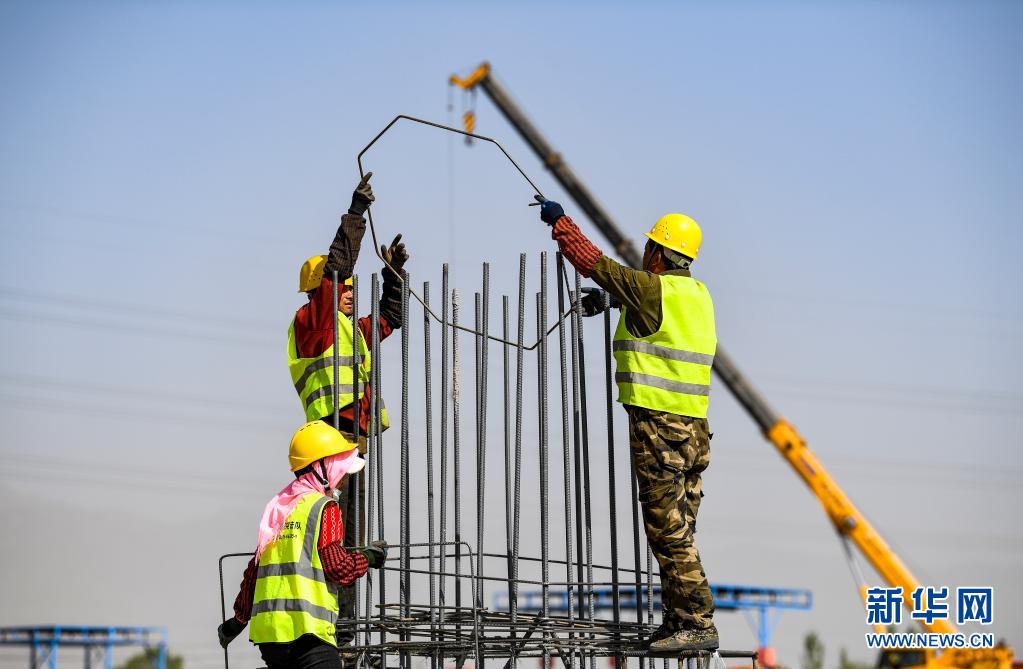 5月1日,寧夏銀川市經(jīng)濟(jì)技術(shù)開(kāi)發(fā)區(qū)中環(huán)50GW(G12)太陽(yáng)能級(jí)單晶硅材料智慧工廠項(xiàng)目的工人在現(xiàn)場(chǎng)作業(yè)。