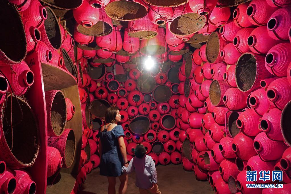 5月1日,參觀者在浮梁縣寒溪村參觀藝術(shù)作品《記憶的容器》。