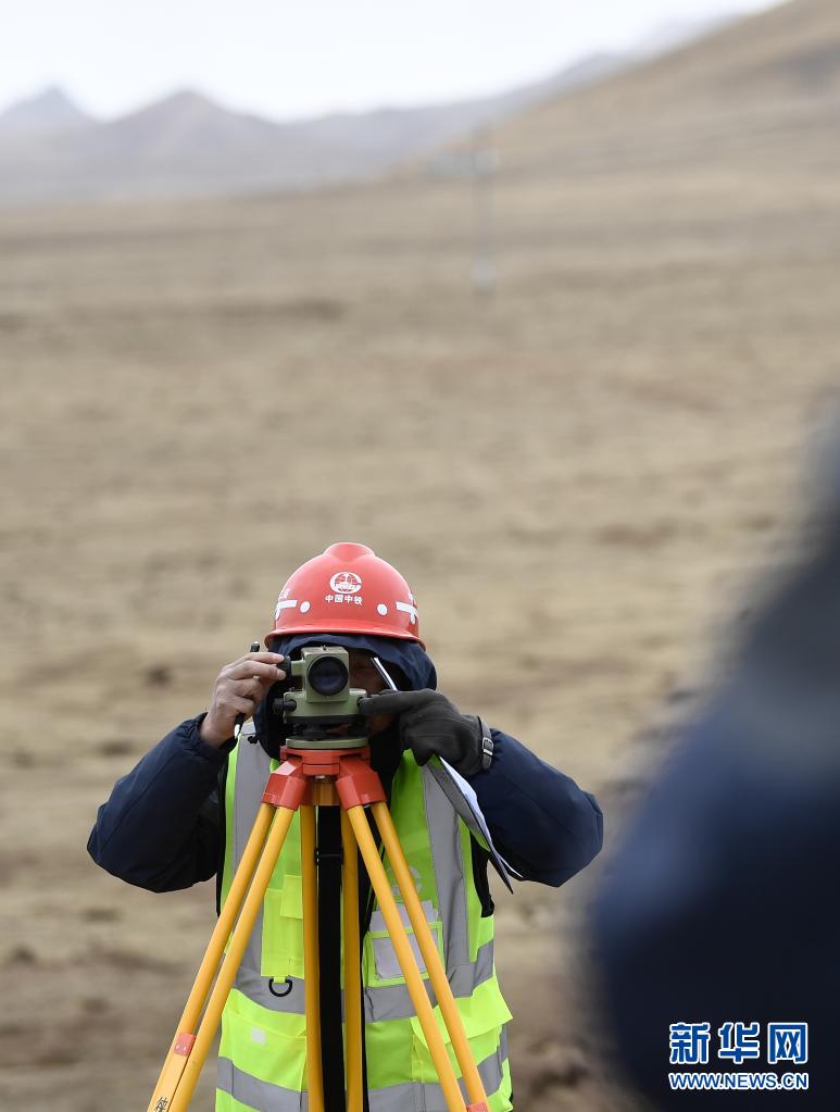 5月4日,中鐵二局建設(shè)工人在盤大公路工地上檢查施工路段平整度。