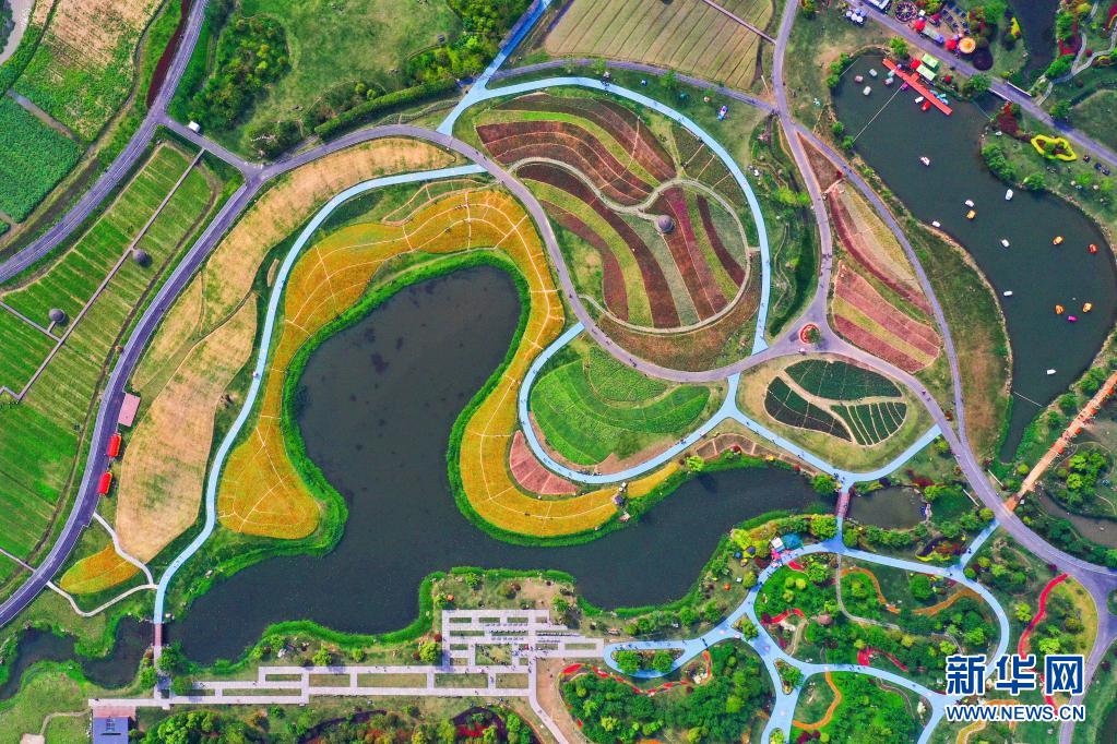 這是5月2日拍攝的浙江省杭州市余杭區(qū)徑山鎮(zhèn)的千畝繽紛花海(無人機(jī)照片)。