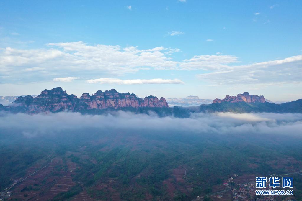 這是5月3日拍攝的河北邯鄲武安市古武當山云海(無人機照片)。新華社記者 邢廣利 攝