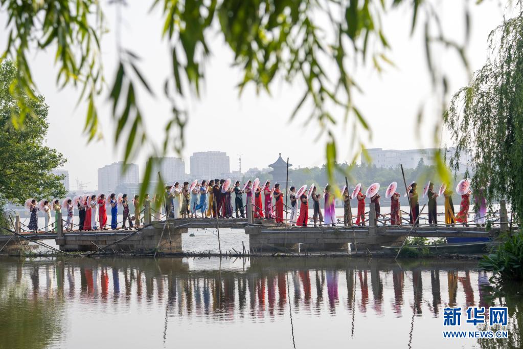 5月9日,江蘇泰州旗袍協(xié)會組織數(shù)十位媽媽在鳳城河景區(qū)進行旗袍秀。
