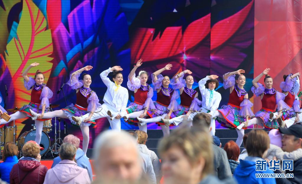 5月9日,演員在白俄羅斯首都明斯克勝利日節(jié)慶活動現(xiàn)場進行文藝表演。