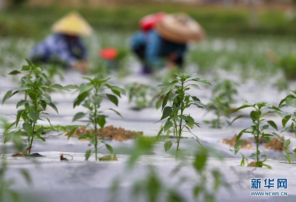 5月13日,村民在玉屏侗族自治縣田坪鎮(zhèn)慶寨村辣椒種植基地管護(hù)辣椒苗。