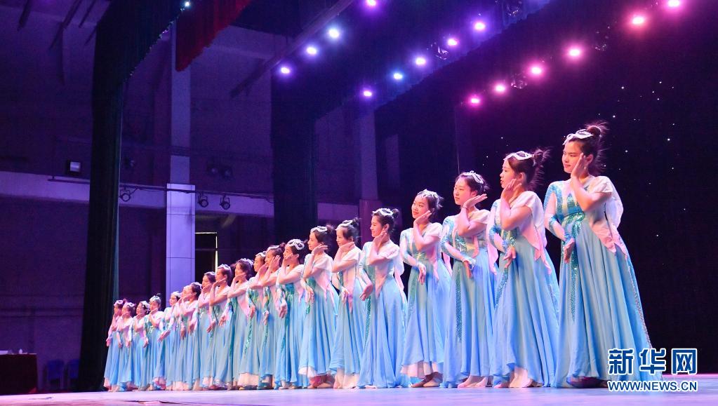 天津理工大學(xué)聾人工學(xué)院的舞蹈隊員們在學(xué)校的劇場里進(jìn)行彩排(5月10日攝)。