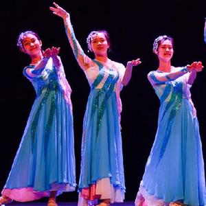 當(dāng)舞臺被燈光照亮,伴隨著臺下老師隨音樂律動的手語指揮,一隊舞者在臺中央翩翩起舞。