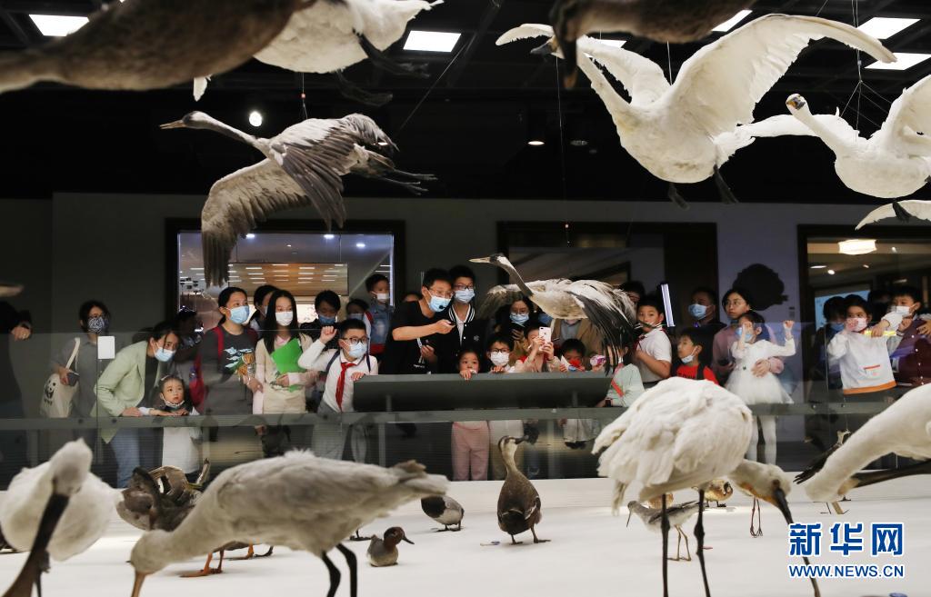 5月18日,觀眾在鳥類展區(qū)聽講解員介紹不同鳥類的特點和習性。