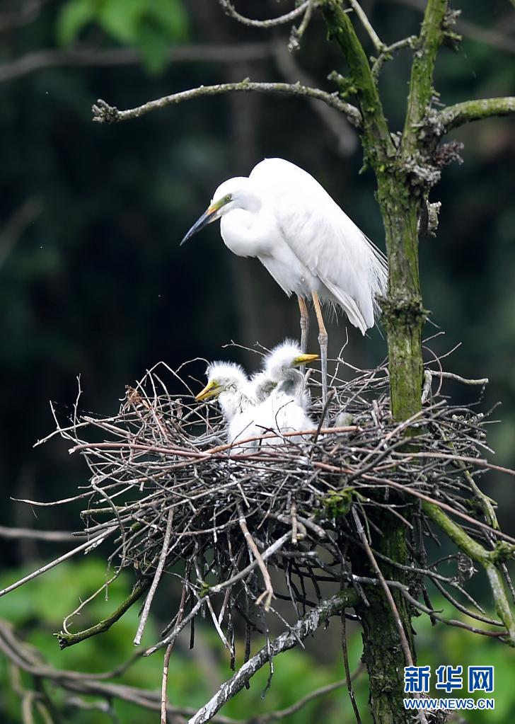 在南昌市新建區(qū)象山森林公園內,白鷺和雛鳥們在一起(5月18日攝)。