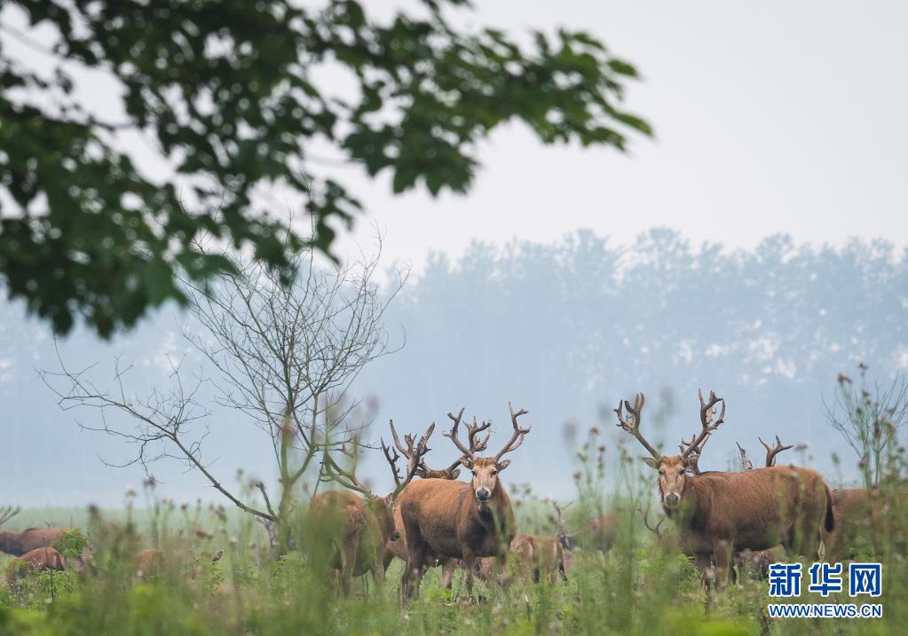 5月17日,一群麋鹿在石首麋鹿國(guó)家級(jí)自然保護(hù)區(qū)內(nèi)活動(dòng)。新華社記者 肖藝九 攝