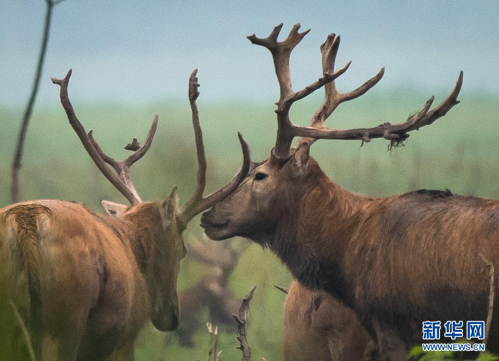 5月17日,麋鹿在石首麋鹿國(guó)家級(jí)自然保護(hù)區(qū)內(nèi)活動(dòng)。新華社記者 饒饒 攝