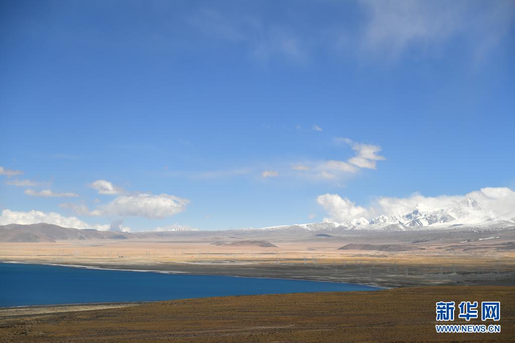 這是希夏邦馬峰腳下的佩枯錯(cuò)(5月14日攝)。