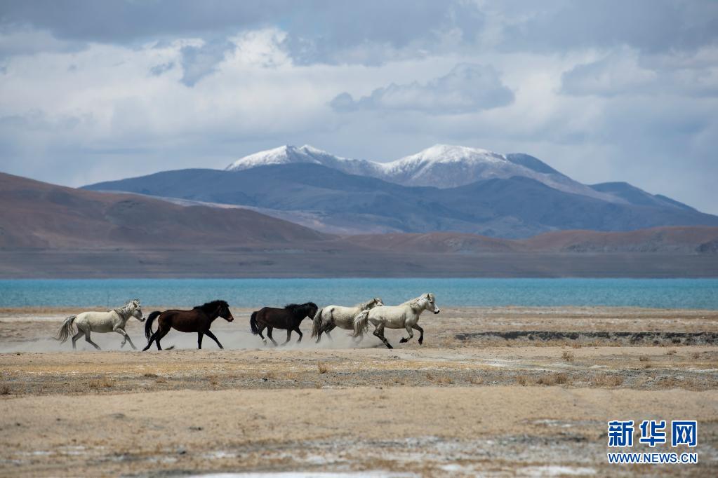 野馬在佩枯錯(cuò)旁奔馳(5月14日攝)。