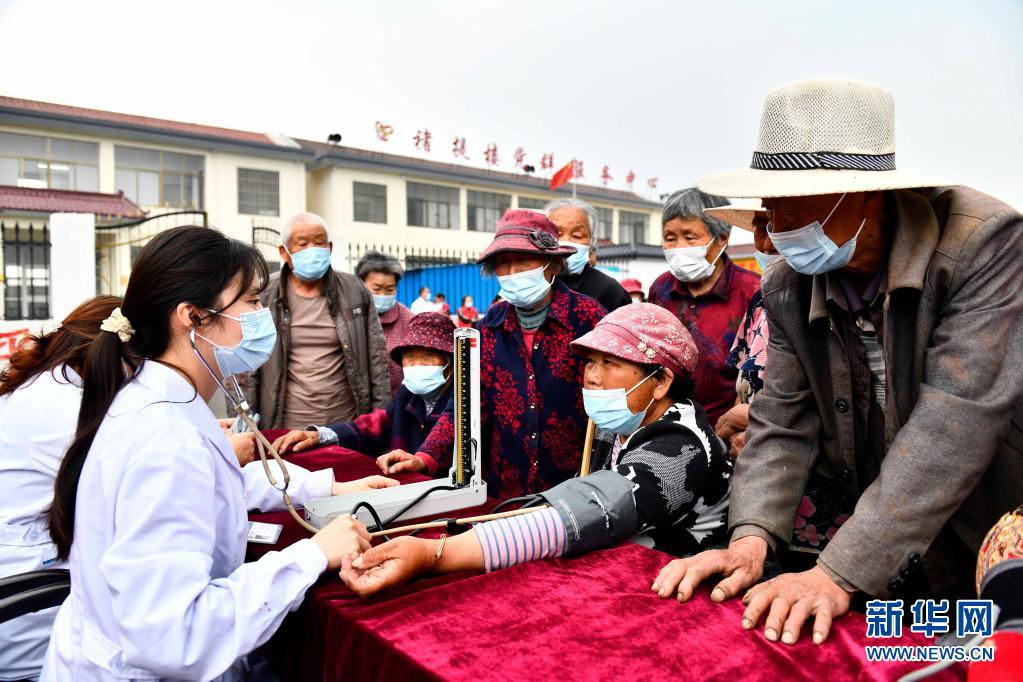 5月21日,在棗莊市臺(tái)兒莊區(qū)澗頭集鎮(zhèn)褚提樓村,“學(xué)黨史惠民”醫(yī)療小分隊(duì)為群眾開(kāi)展送醫(yī)、送藥服務(wù)。