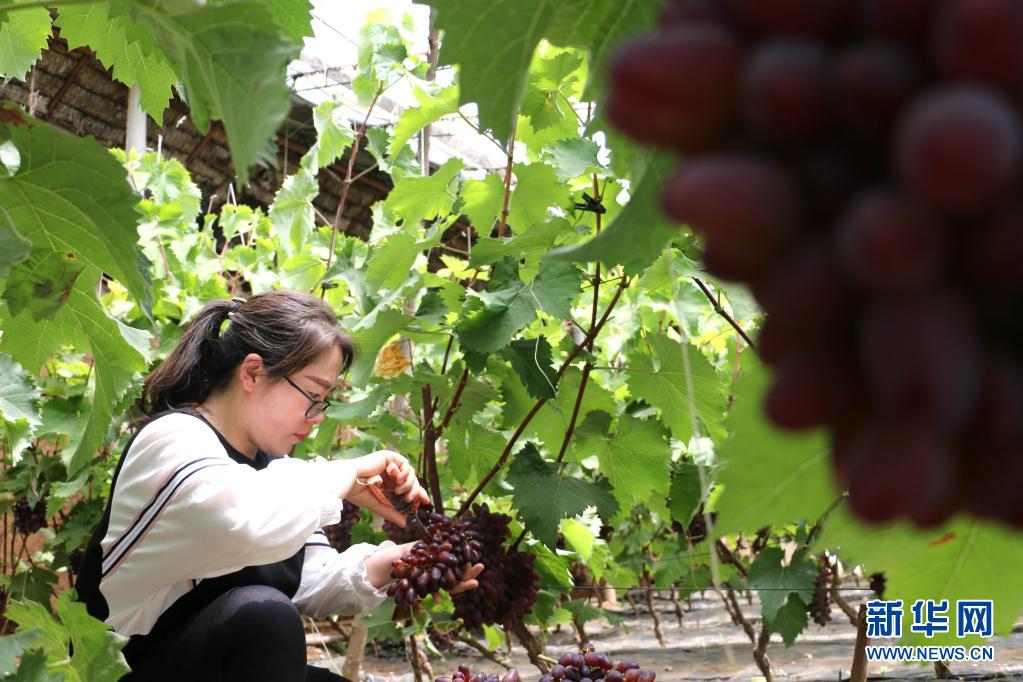 5月23日,市民在河北省平泉市道虎溝鄉(xiāng)雙峰社區(qū)一處設(shè)施葡萄大棚里采摘茉莉香葡萄。