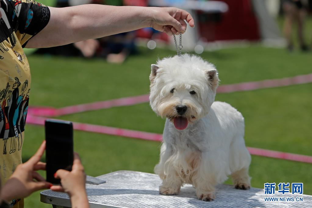 5月23日,一只寵物犬在羅馬尼亞首都布加勒斯特參加選美比賽。新華社發(fā)(克里斯泰爾攝)
