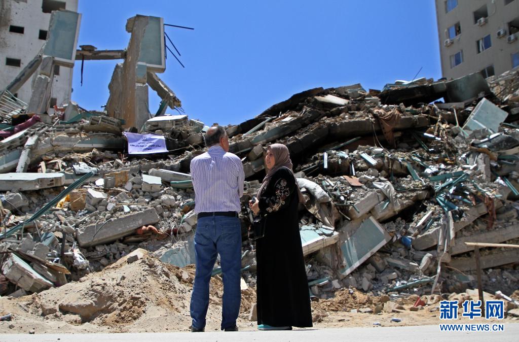 5月23日,巴勒斯坦人在加沙城望著遭以軍空襲損毀的賈拉塔。5月10日以來,以色列與加沙地帶武裝組織之間爆發(fā)嚴(yán)重沖突。20日晚,哈馬斯與以色列方面各自宣布,雙方已達(dá)成停火協(xié)議,停火從21日凌晨開始。新華社發(fā)(里澤克·阿卜杜勒·賈瓦德攝)