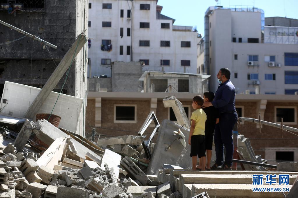 5月23日,巴勒斯坦人在加沙城望著遭以軍空襲損毀的房屋。5月10日以來(lái),以色列與加沙地帶武裝組織之間爆發(fā)嚴(yán)重沖突。20日晚,哈馬斯與以色列方面各自宣布,雙方已達(dá)成停火協(xié)議,?;饛?1日凌晨開始。新華社發(fā)(里澤克·阿卜杜勒·賈瓦德攝)