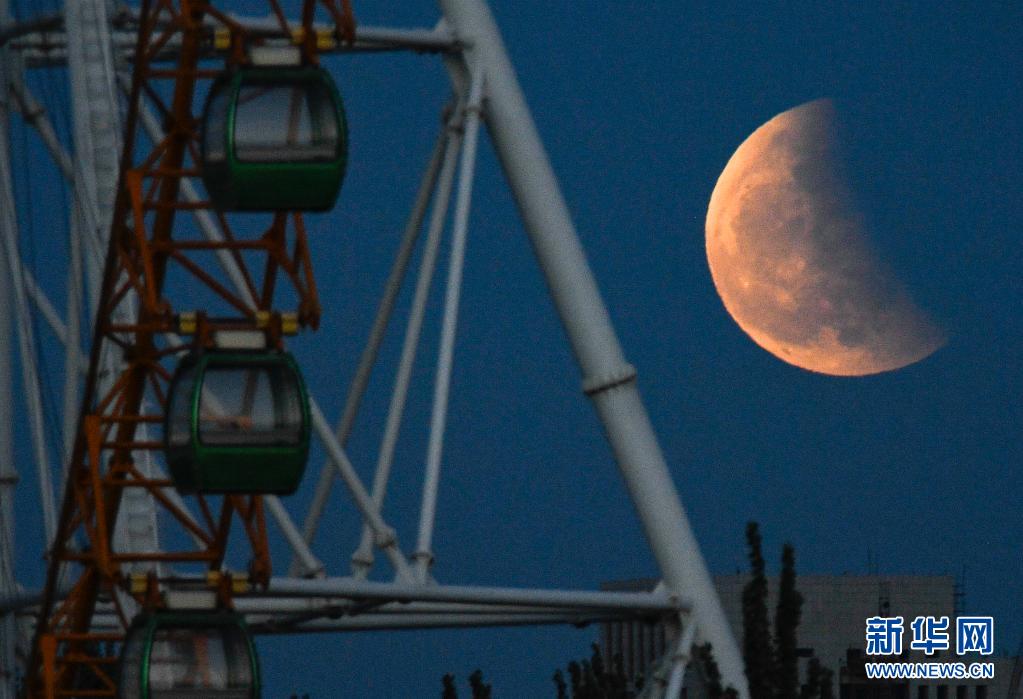 當(dāng)日,本年度“最大最圓月(也稱‘超級月亮’)”與月全食(也稱“紅月亮”)浪漫“邂逅”。