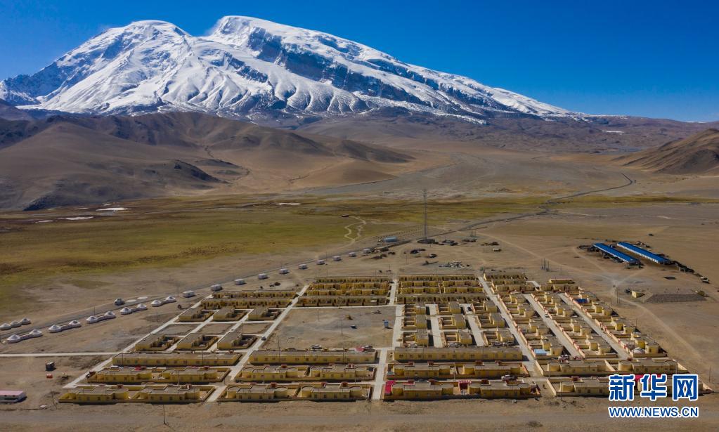 “冰山之父”慕士塔格峰腳下的新疆阿克陶縣布倫口鄉(xiāng)蘇巴什村三小隊(5月17日攝,無人機(jī)照片)。別克米爾扎·圖爾達(dá)力的家就在這個村莊。新華社記者 胡虎虎 攝