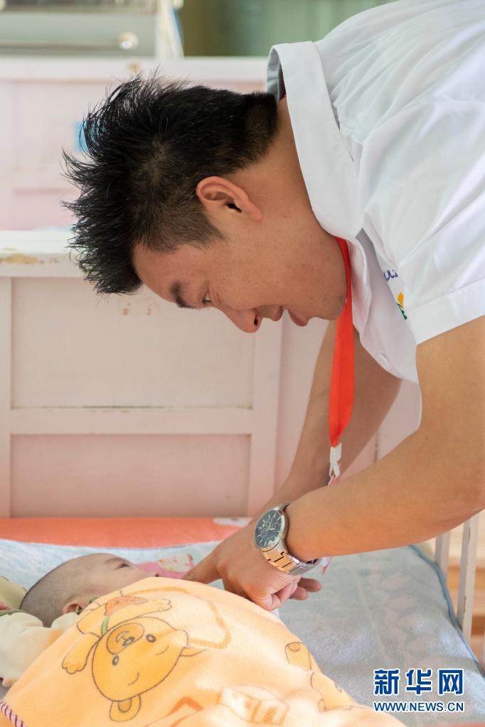 在太原市社會(huì)(兒童)福利院,黨龍祥在照看一名嬰兒(5月26日攝)。新華社記者 楊晨光 攝