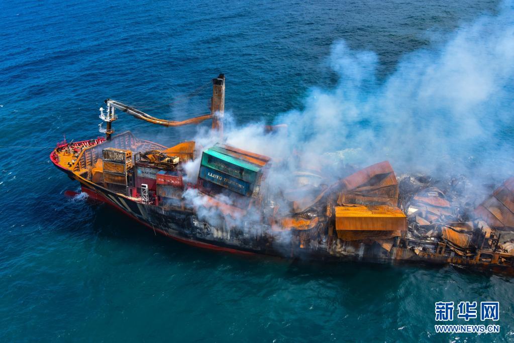6月2日,斯里蘭卡總統(tǒng)戈塔巴雅下令將起火貨船“X-PRESS PEARL”號拖向遠離科倫坡港的深海區(qū),以防引發(fā)更大的環(huán)境災(zāi)難?!癤-PRESS PEARL”號貨船5月20日抵達科倫坡港西北約9.5海里錨地時發(fā)出火警求救信號。斯里蘭卡海洋環(huán)境保護局官員5月28日表示,在科倫坡港附近起火燃燒的“X-PRESS PEARL”號貨船預(yù)計將會引發(fā)嚴重環(huán)境災(zāi)難。新華社發(fā)(斯里蘭卡空軍媒體處供圖)