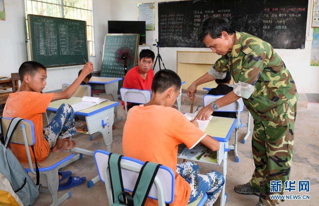在廣西上思縣那琴鄉(xiāng)中心小學(xué)逢通村教學(xué)點(diǎn),梁志雄老師在輔導(dǎo)學(xué)生(6月16日攝)。新華社記者 陸波岸 攝