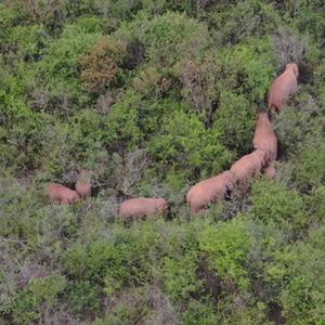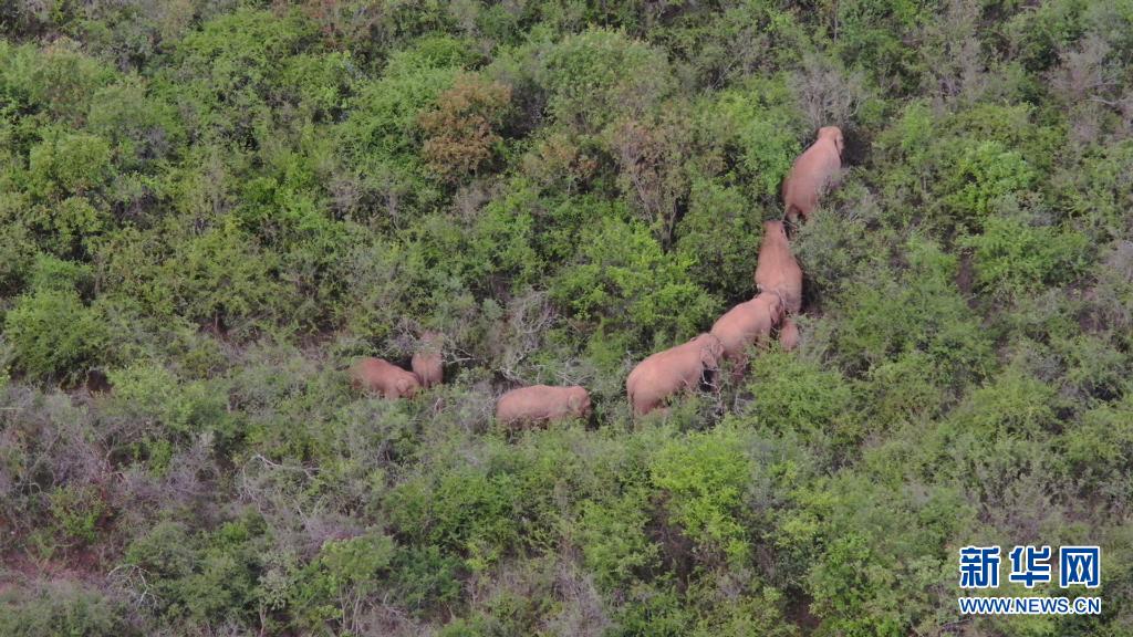 6月22日在云南省玉溪市峨山縣大龍?zhí)多l(xiāng)附近拍攝的象群(無人機(jī)視頻截圖)。