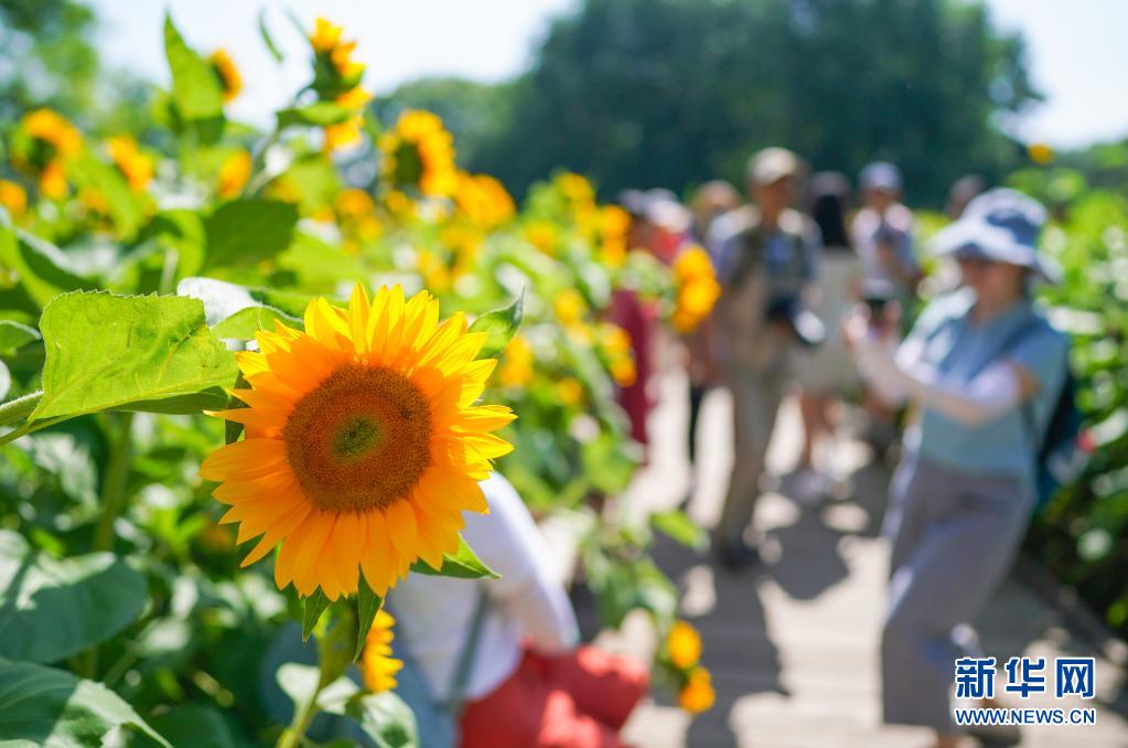 日前,北京奧林匹克森林公園北園的向日葵進(jìn)入盛花期,眾多市民和游客前來觀賞。