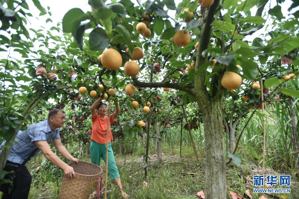 7月5日,四川省內江市東興區(qū)椑木鎮(zhèn)長豐村村民在摘梨。