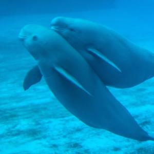 在中國(guó)科學(xué)院水生生物研究所白鱀豚館里,生活著一對(duì)江豚母子——母豚洋洋和小江豚YYC。