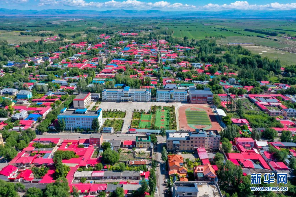 這是杜寶柱任教的新疆塔城地區(qū)塔城市第二小學(xué)(6月12日攝,無(wú)人機(jī)照片)。