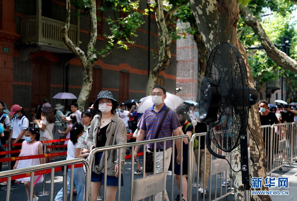中共一大紀(jì)念館在觀眾排隊通道設(shè)置多個噴霧風(fēng)扇用于降溫(7月11日攝)。