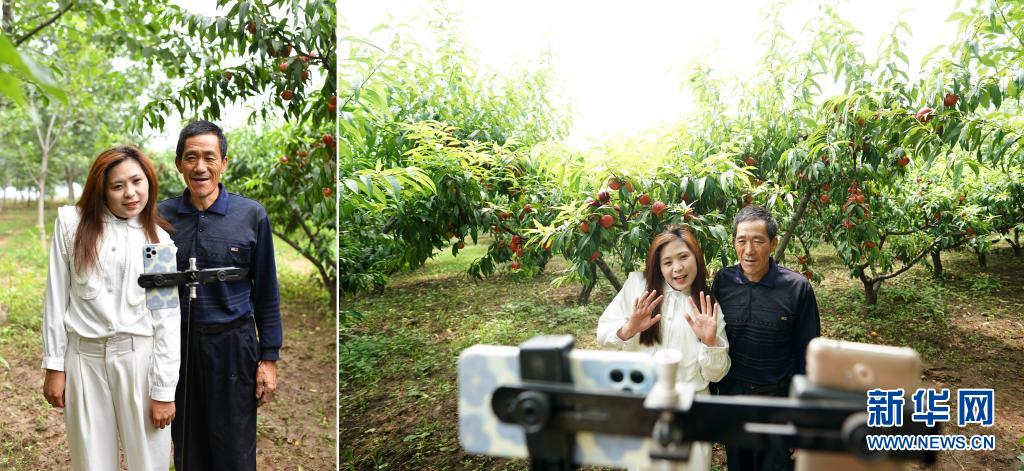 拼版照片:左圖為常阿娟和父親常乃民在山西省長治市潞州區(qū)東旺村果園里;右圖為常阿娟和父親常乃民通過網(wǎng)絡直播介紹自家種的水果(7月7日攝)。今年28歲的常阿娟原來在一家會計師事務所工作,2019年返鄉(xiāng)和父母一起打理果園。近兩年,常阿娟抓住網(wǎng)絡直播的熱潮,把鏡頭聚焦田間地頭,澆水、施肥、剪枝現(xiàn)場都成了她的“直播間”。借助網(wǎng)絡的力量,常阿娟家的產(chǎn)品不愁銷路,找她代售農(nóng)產(chǎn)品的村民也越來越多。