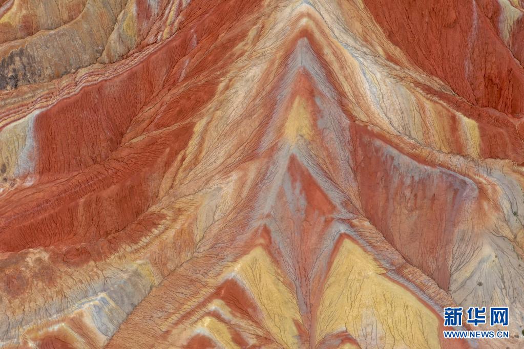 張掖世界地質(zhì)公園的一處彩色丘陵地貌景觀(7月14日攝,無人機(jī)照片)。